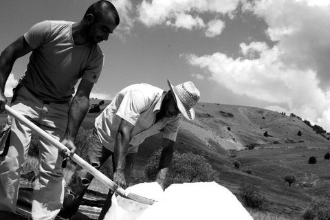 Bölgenin iklim koşullarına bağlı olarak sadece yazın üç ay boyunca üretimi yapılan Antik Tuz hasat edilirken hiçbir iş makinesi kullanılmıyor. Kaynağından yeryüzüne çıkan tuzlu suyun, sadece güneş ve rüzgarın etkisiyle buharlaşması sonucu oluşan tuz kristalleri, insan eliyle toplanarak çuvallara dolduruluyor. Aslında doğanın kendisinin bütün işi yaptığı bu geleneksel üretim şeklini koruyarak Antik Tuz’un doğallığını ve temizliğini de korumuş oluyoruz.